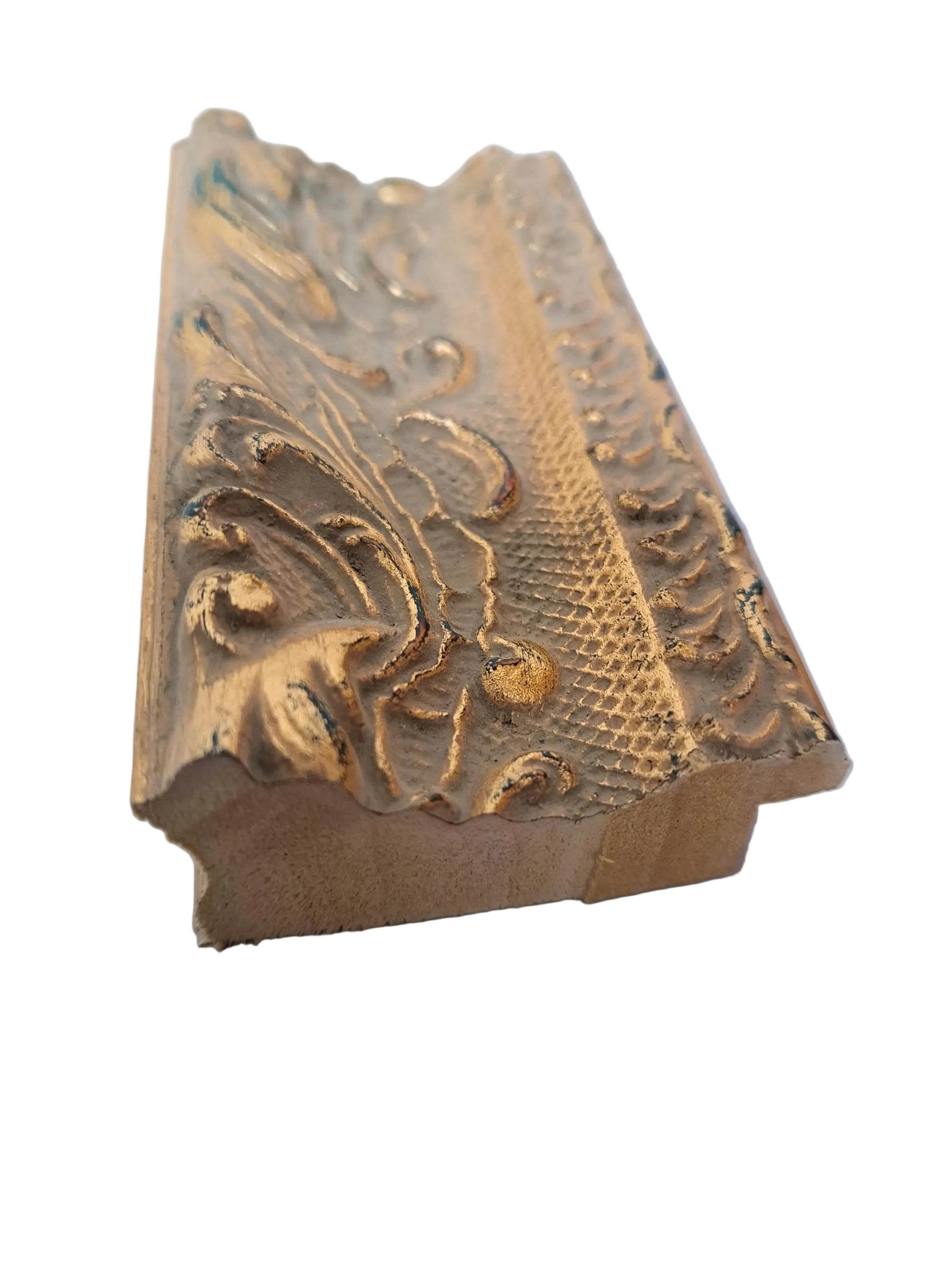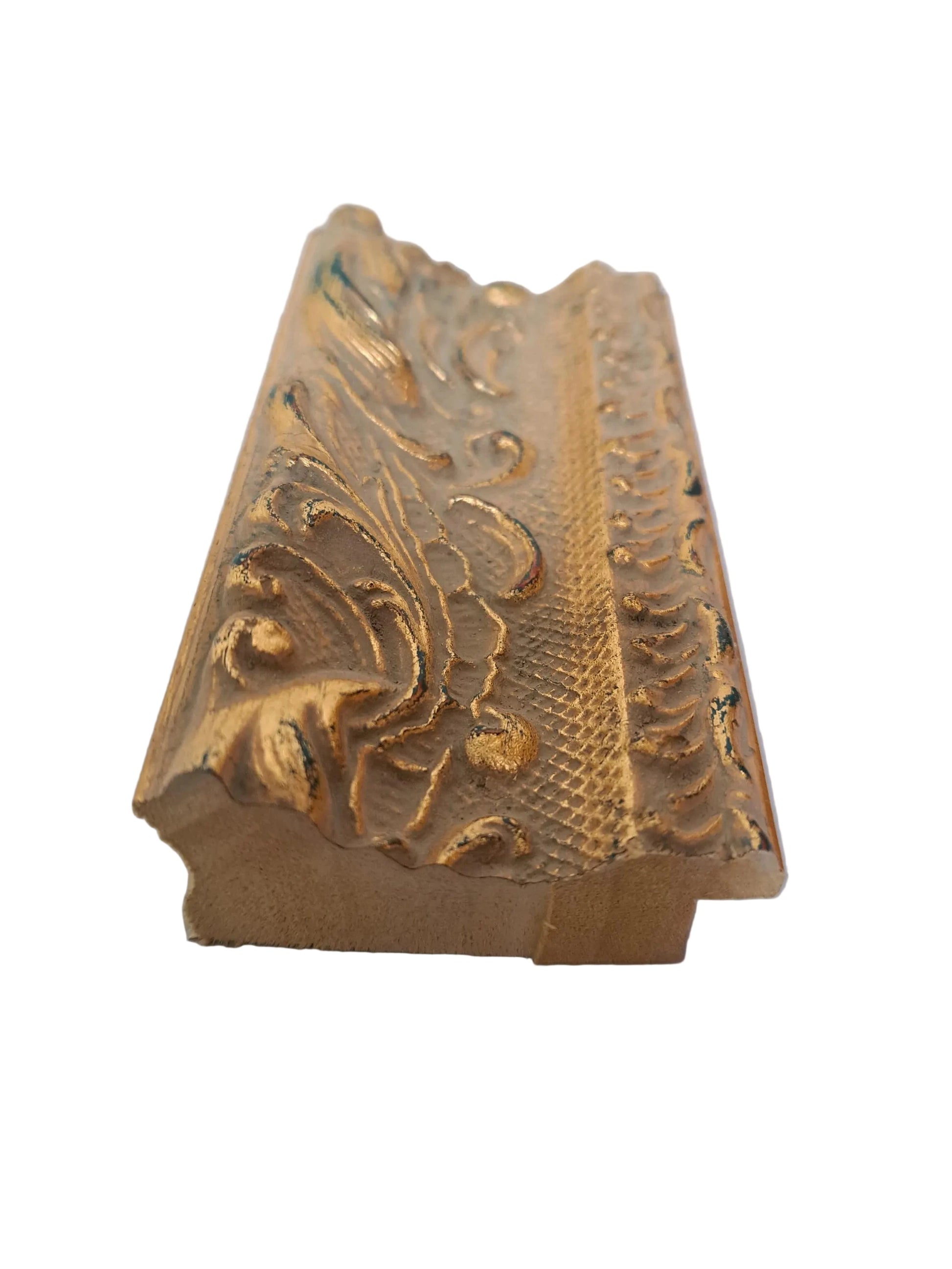 This ornate wood picture frame moulding with a gold leaf finish is a high-end product, typically used for framing art, photos, mirrors, or other decorative items. The intricate design and luxurious gold leaf finish make it perfect for traditional, vintage, or classic interior decor. Made in Italy, it benefits from superior craftsmanship and attention to detail, ensuring durability and an elegant look